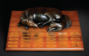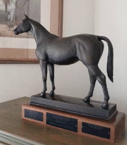 In 1977 at the 3rd Annual Convention, a number of awards were presented for the first time. Awards for performance in Dressage and Eventing were codified as the Trakehner Verband Award (Dressage) and the Trakehner Förderverein Award (Eventing). The “Gerda Friedrichs Breeders Award“ was first presented to the breeders of a successful eventer. Over the years, the criteria for this award changed. In 1978 it was awarded to “..the stallion or mare who has been most successful during the year in in-hand competition breeding shows.” In 1983 Ann and Nick Chandler donated a bronze sculpture of a mare giving birth for this award. Near the end of her life in 1987, Gerda wished the award to be given in recognition of the broodmares and foals of North America. At that time, the award was renamed the Gerda Friedrichs Memorial Award.