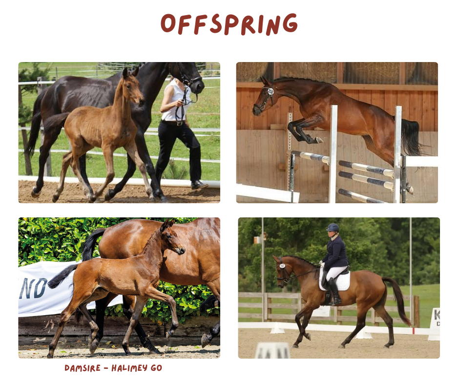 Halimey’s sire, Askar AA, competed in the 1996 Atlanta Olympic Games and his mother, Hamamelis Go, is also the dam of the stallion Harlem Go and half-sister of Pb Go Hamlet.